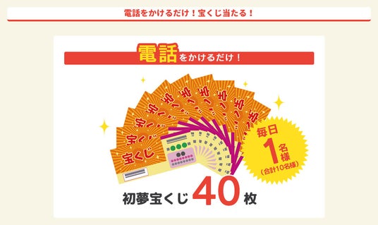 【チャンス】応募電話番号に電話をかけるだけ!毎日『宝くじ』当たる!!(毎日1名様(合計10名様)に初夢宝くじ)