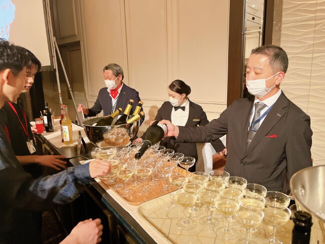 第二部は、ホテルオークラ京都様に移動し、会食、ホテル学科金子先生と槇塚先生のバーカウンター、教職員インタビュー、豪華抽選会、30周年の歩み動画などをお楽しみいただきました。