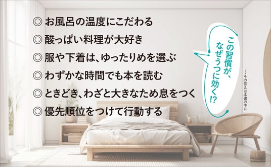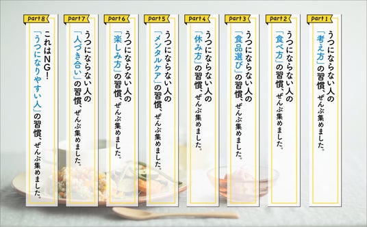 本書は「うつにならない人」の習慣を、生活習慣、食生活、考え方など、さまざまな側面から紹介します。