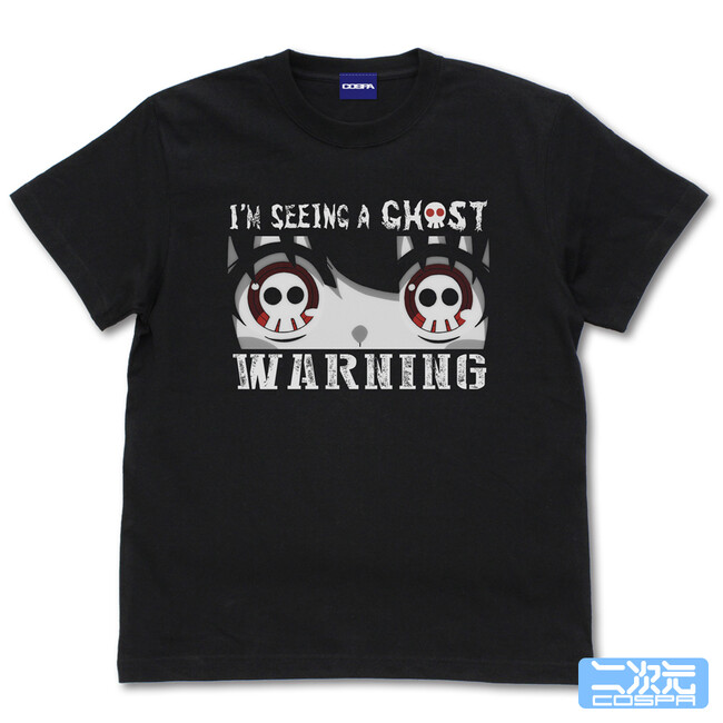 「霊がみえています!」の英文と共に夜宵の瞳が霊を見通すTシャツ