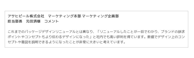 本調査結果について、アサヒビール社より以下の評価を頂戴しております。