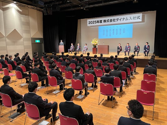 全国46都道府県にパチンコホールを展開する株式会社ダイナム(本社:東京都荒川区西日暮里 代表取締役:保坂 明)は、2025年4月1日(火)、日暮里サニーホール(東京都荒川区)にて入社式を執り行いました。本年度の新入社員54名は、4泊5日の教育プログラム(新入社員導入研修)を経て店舗へ配属されます。