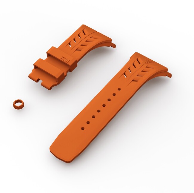 極めて軽量で柔軟、そして弾力のあるシリコンストラップが完璧なフィット感を実現させます。また、シリコンが持つ耐候性、生体適合性により、様々な外部環境にも対応し腕に一切の影響を与えず、安全且つ快適に使用していただけます。
