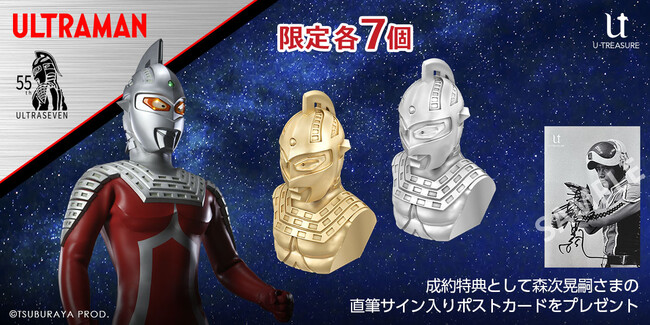 大人のための本格的なキャラクタージュエリーを扱うユートレジャー(東京都豊島区:代表取締役:伊藤 崇史)は、「ウルトラセブン」とコラボし、55周年を記念したプレミアムフィギュア(世界限定7個)を、3月17日(金)~8月31日(木)の期間に数量限定の完全受注生産で予約受付を行います。期間中、ユートレジャーコンセプトストア池袋にてサンプルを展示予定です。※展示スケジュールが変更となる場合がございます。