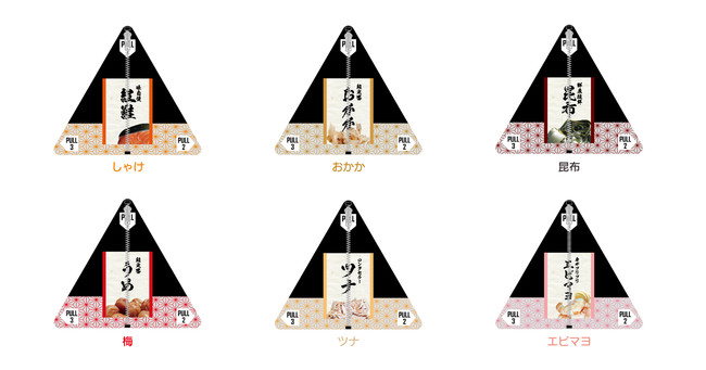 しゃけ、梅、昆布、おかか、エビマヨにツナとコンビニおにぎりを代表するラインナップをご用意した全6種類展開となっております。