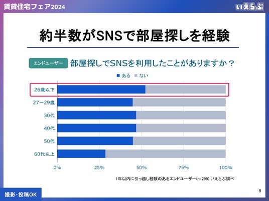 庭山:現在、部屋探しの中心はSNSとなり、半数以上がSNSを利用して物件を見つけています。テレビ視聴の3~4倍の利用頻度を持つSNSを活用することで、認知度向上が期待されます。