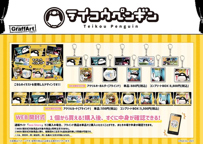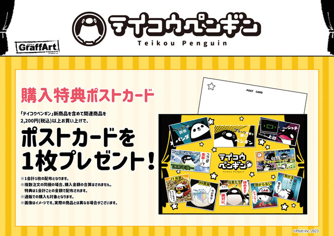 また、「テイコウペンギン」新作グッズを含めて関連商品を2,200円(税込)以上お買い上げで、ポストカードを1枚プレゼント! オンラインミュージアム開催の記念として、ゲットしてみてはいかがでしょうか?