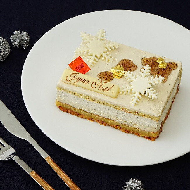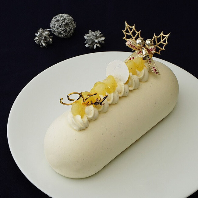 親しきシェフのガトーのオマージュ。全てのパーツに甘美な香りのマダガスカル産バニラを贅沢に使用し、フランス政府認定の最高級ラム酒でまとめあげたクリスマスを彩る贅沢なケーキです。