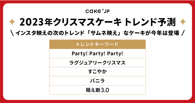 また、Cake.jpでは2023年9月26日(火)よりクリスマスケーキの予約をスタートいたします。トレンド発表にあわせてCake.jpからおすすめのクリスマスケーキもあわせてご紹介いたします。