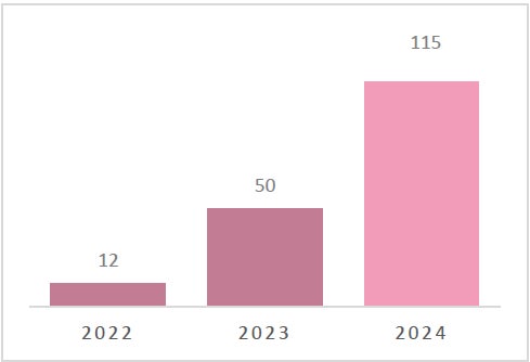 コロナ禍で社会全体にオンライン活用が普及したことによって、共創や事業創出活動におけるリアルな場の価値が再認識され、開業1年目から会員による主体的な活動がうまれて利用者は7.2万人となりました。2年目には、施設理念の浸透、プログラムの充実やコミュニティの活性化が進50件を超える共創事例が報告されました。