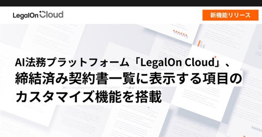 株式会社LegalOn Technologies(本社:東京都渋谷区 代表取締役 執行役員・CEO:角田 望)が提供する、法務業務全体を包括的に支援するAI法務プラットフォーム「LegalOn Cloud」( https://www.legalon-cloud.com )で、締結版契約書に関連する項目をユーザーごとにカスタマイズして表示できる機能をリリースしました。