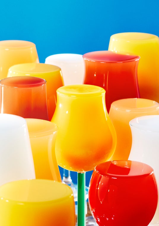 チューリップのようにも、キャンディのようにも見える形の曖昧さを生かし、グラスという既成の認識をずらしていく発想は、AKANEの作品に通底する大きな特徴です。単に器として美しく見せるのではなく、見る人の解釈がひろがる“境界の揺らぎ”を画面の中に立ち上げています。