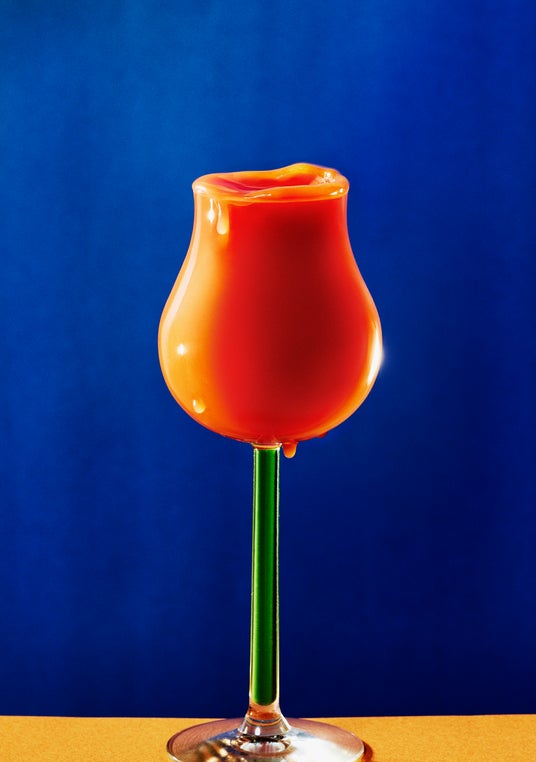 今回誌面では、メインとなるチューリップ型のグラスを起点に、スタジオにある複数のグラスを組み合わせながら構成を組み立てた過程も紹介されています。脚部を「茎」に見立てる工夫や、オレンジジュース、トマトジュース、グレープフルーツジュース、牛乳などを希釈しながら理想の色味へと調整したプロセスからは、偶然性を受け入れつつも、画面を高い精度で設計する姿勢がうかがえます。