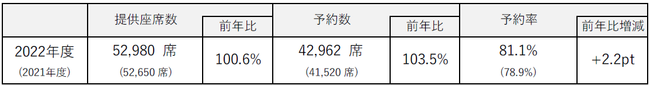 2022年度年末年始期間[2022年12月28日(水)~2023年1月5日(木)]の12月21日(水)時点のご予約状況について、ご報告いたします。