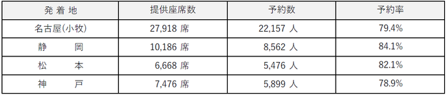 ※ 日本航空とのコードシェア分については、提供座席数および予約数に含まれておりません。