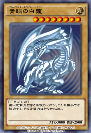 闇遊戯が使用するカード「ブラック・マジシャン」、海馬瀬人が使用するカード「青眼の白龍」をプレミアム加工でプレゼントします。