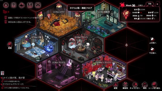 また、レストランや客室改築といったホテル運営に加えて、探索・錬金術・SAN値(正気度)を削って強力な効果が得られる『神託(オラクル)』など、“クトゥルフ神話らしい”ダークな決断も迫られる本作。まさに【あなたの経営判断とヒロインとの絆が運命を変える、混沌が這い寄る世界の、魅惑で狂気なホテル経営シミュレーション】です。