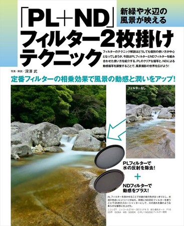 フィルターのテクニック解説はどうしても個別の使い方が中心となってしまいますが、今回はPLフィルターとNDフィルターを組み合わせた使い方を紹介。PLによるクリアな描写と、NDによる動感描写を調整することで、風景写真の表現がより広がります。各フィルターの効果・使用方法から、撮影の手順、使用時の注意点、最新フィルターの紹介まで、豊富な作例とともに丁寧に解説します。
