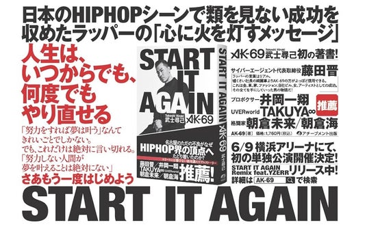 ヒップホップアーティストAK-69の初の著書『START IT AGAIN』はAmazonランキング実用・暮らし・スポーツ部門で1位を獲得し、音楽ファンのみならず幅広い層に支持を広げています。