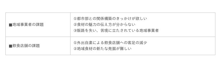 新型コロナウイルス感染拡大防止のために不要不急の外出自粛が続くことで、屋外での消費が減少し、販路を失った苦境に立つ地域事業者が増加しています。また、飲食店舗では来店するお客様数が減少し、営業を継続することが困難な飲食店舗も後を絶ちません。