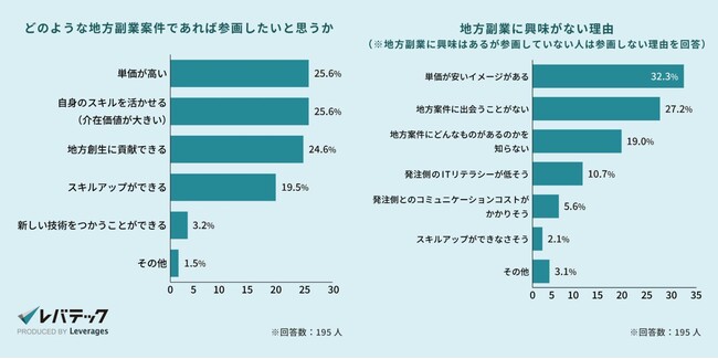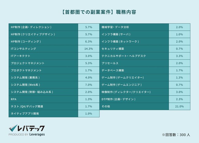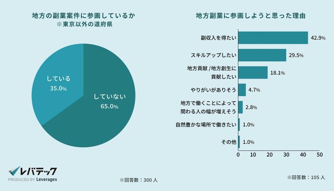 レバテック株式会社が運営するITエンジニア・クリエイター専門エージェント レバテック ( https://levtech.jp/ )は、エンジニアで副業をしている300名を対象に、副業の実態調査を実施しました。今回は前編・中編・後編に分けての発表となり、本記事では中編として、「地方での副業編」についてお届けいたします。