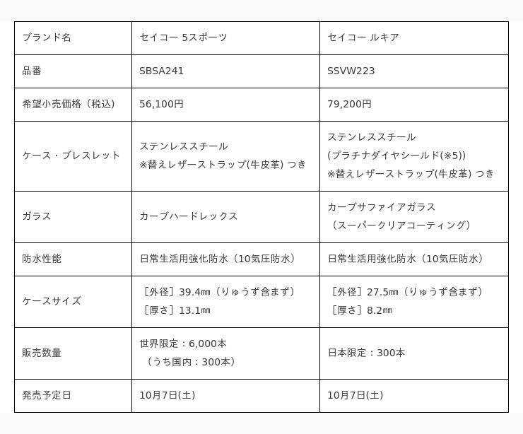 セイコーウオッチ株式会社(代表取締役社長:内藤 昭男、本社:東京都中央区)は、国産初の腕時計「ローレル」をオマージュし、そのデザイン要素を取り入れた数量限定モデル全11機種を10月7日(土)より発売いたします。<セイコー プレザージュ>、<セイコー プロスペックス>、<セイコー アストロン>、<セイコー 5スポーツ>、<セイコー ルキア>、<セイコーセレクション>の6ブランドからなる11モデルの希望小売価格は、36,300円(税込)~220,000円(税込)です。