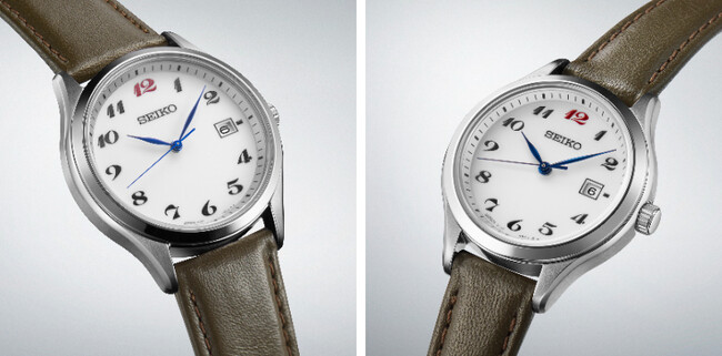 ホワイトダイヤルをベースに赤の差し色を施したデザイン。アラビア数字には、初代「ローレル」をイメージしたフォントを採用。文字が肉盛り印刷で立体的に表現され、美しさと読み取りやすさが両立しています。日付表示つきのシンプルなソーラーウオッチなので、様々なシーンで着用いただけます。