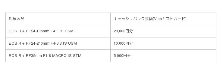 2:「EOS R」に加え、期間中に対象のRFレンズを購入し応募した方全員に最大35,000円分をキャッシュバック(Visaギフトカードプレゼント)