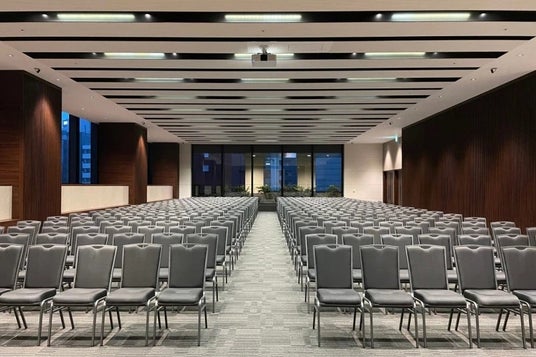 総契約面積は1,180平方メートル (357坪)で、施設内には天井高4.5mの開放感あふれる約400平方メートル の大型ホールをはじめ、用途に応じて柔軟にレイアウト変更が可能な会場を備えています。会議や研修から、株主総会、カンファレンス、記者発表会などの大規模なイベントまで、幅広いビジネスシーンに対応いたします。また、高性能な音響・照明設備や大型スクリーンを備え、多彩な演出が可能です。式典やパーティーの場にふさわしい上質な空間を提供します。