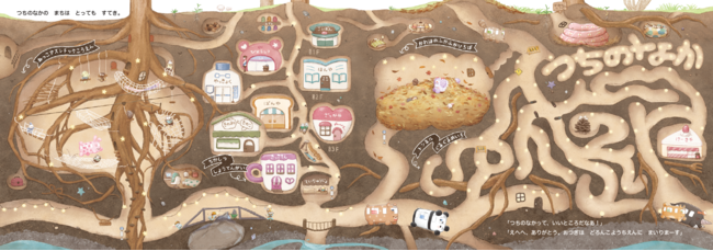 地下の施設や謎の部屋、美味しそうな食べ物、バスたちのおでこに書かれた気持ち、いつもどこかに隠れているタヌキバス……など、絵本のすみからすみまで遊び心がいっぱい! 見るたびに新しい発見のある、何度でも楽しめる絵本です。