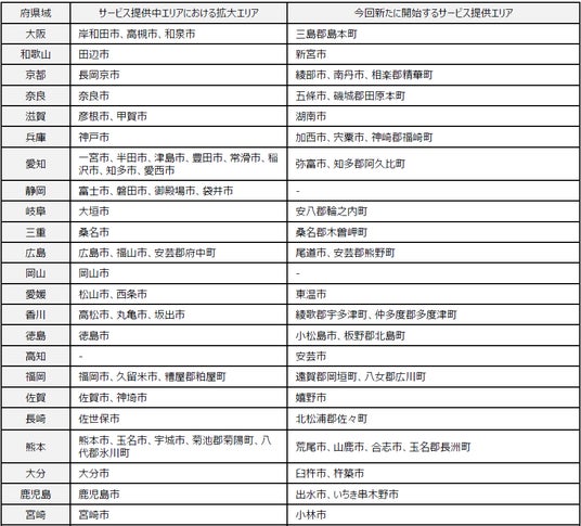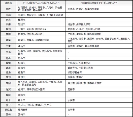 1.サービス提供拡大エリア及び提供開始時期(予定)