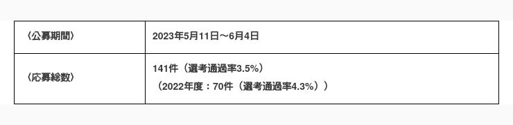 2023年度公募概況やアーティスト・フェロー選考結果に関する詳細は、こちらのプレスリリースをご覧ください。
