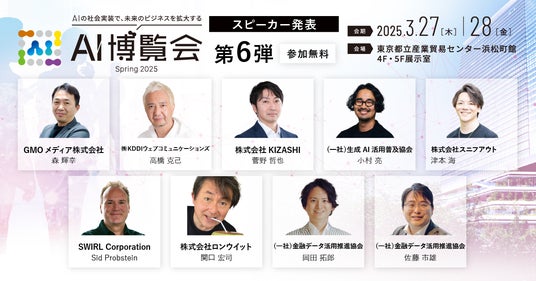 AIsmileyは、2025年3月27日(木)~ 3月28日(金)に「AI博覧会 Spring 2025」を開催します。本日カンファレンスの第6弾スピーカーを公開しました。ビジネスを変革させるカギとなる最先端のAIトレンド情報を収集できる絶好の機会ですので、ぜひご参加ください。
