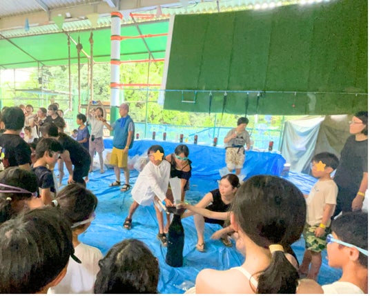 当日のイベントでは、子どもたちが考えた様々なエンターテイメントが実現しました。子どもチームVS大人チームで本気で繰り広げられた「WATER逃走中ゲーム」、子どもたちがゼロからシナリオづくりをした演劇「いたずら万博かき氷事件」、何度もお家で実験を重ねたメントスコーラ実験発表会など、子どもたちの夢の実現に向けた活動が展開されました。