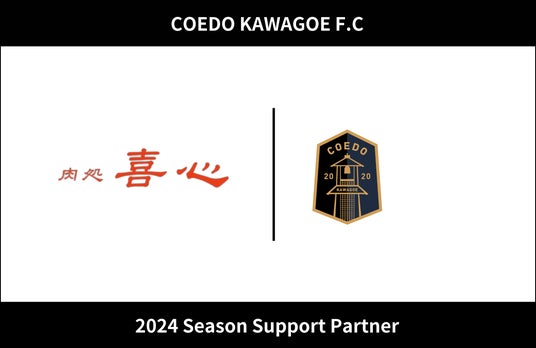 COEDO KAWAGOE F.Cを運営するCOEDO KAWAGOE F.C株式会社(埼玉県川越市、代表取締役 有田和生)は、上福岡駅北口徒歩約2分でを行っている肉処 喜心(埼玉県ふじみ野市、店主 大室憲二)と2024シーズンのサポートパートナー契約を締結したことを発表いたします。