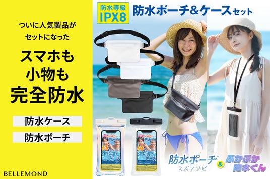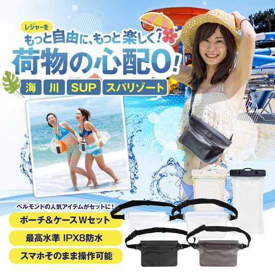 防水ケースや防水バッグで注目を集めるベルモンドの人気商品2種がセットで登場。スマホの水没や盗難など、荷物の心配から解放され、プールやスパリゾートなどのレジャーをより安心して心から楽しめるようになります