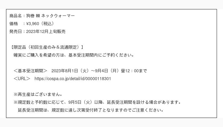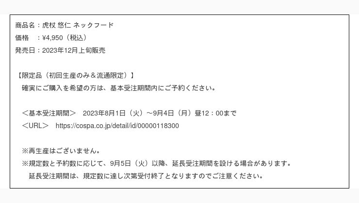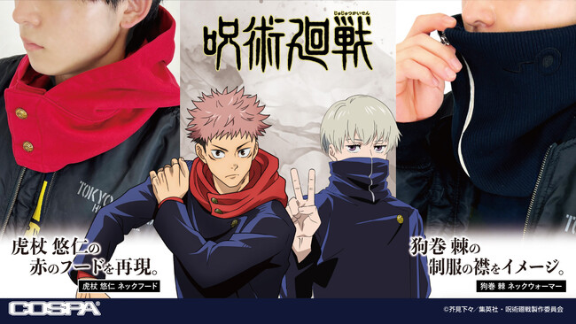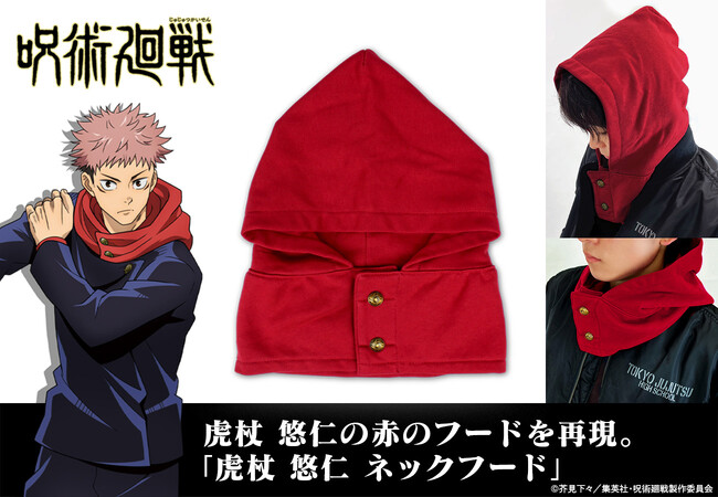 TVアニメ『呪術廻戦』より「虎杖 悠仁」の赤いフードを再現したネックフード、「狗巻 棘」の制服の襟をイメージしたネックウォーマーが登場!【初回生産のみ】の限定品。お買い逃がしなく!