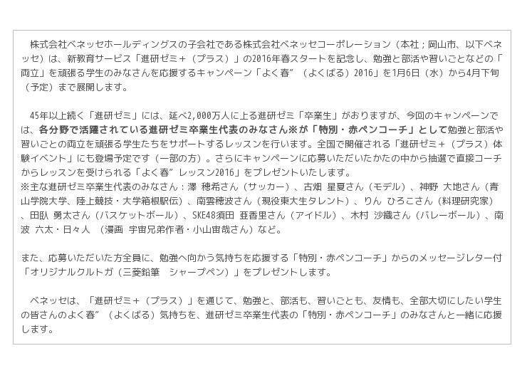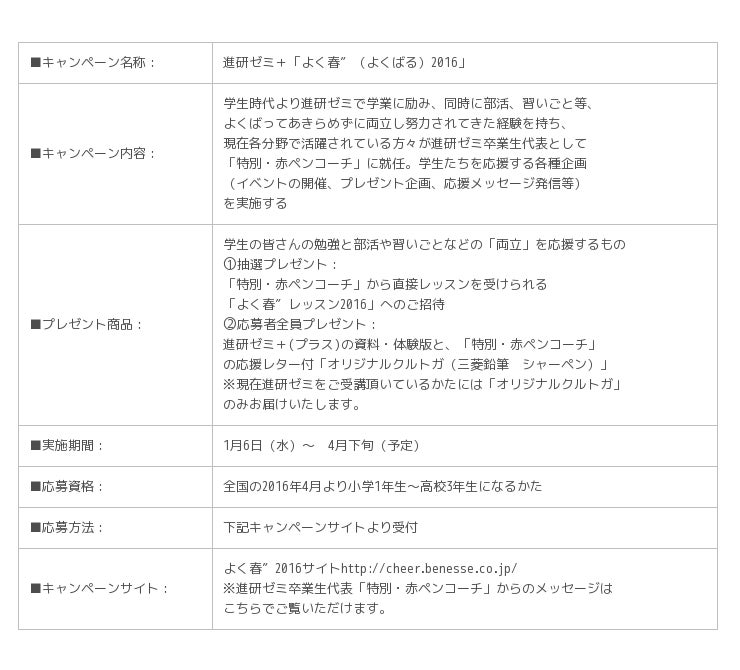 「よく春″2016」に応募いただいたかたの中から抽選で、「特別・赤ペンコーチ」からの直接レッスンにより学生の皆さんの「両立」をサポートする「よく春″レッスン2016」をプレゼントいたします。