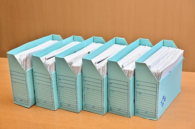 また、工事完了報告書が10枚を超える場合もあり、平均して1件あたり5枚程度、月に約1,000枚の紙の書類が発生していました。