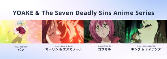 『YOAKE & The Seven Deadly Sins Anime Series』第二弾は、2025年4月29日(火)20時(日本時間)より、「七つの大罪」のアニメシリーズ版から、人気キャラクターたちの名場面をテーマとした全4作品の公式デジタルアートを順次リリースいたします。