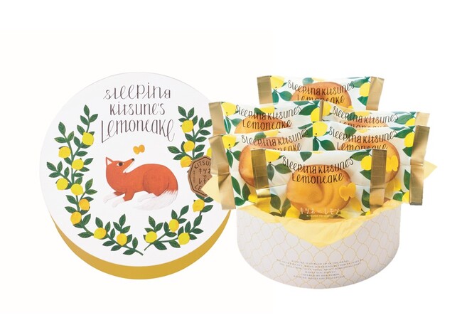 眠っているキツネをかたどった、香りと味わいの2層仕立てのレモンケーキ