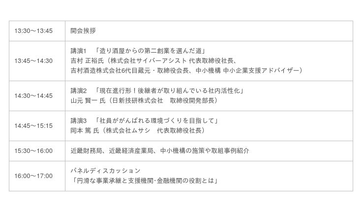 本セミナーでは、金融機関や支援機関、中小企業を対象に、事業承継に取り組んできた経営者の経験談や、地域の金融機関も交えたパネルディスカッションを通じて、円滑な事業承継や後継者育成のためのヒントや情報を提供します。
