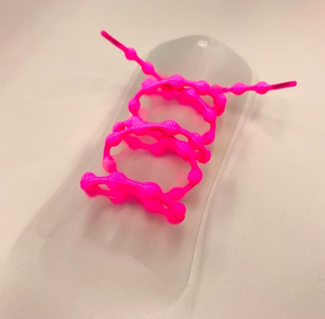 参加賞に決まったTシャツは、春の桜を感じさせるピンク色のデザインです。また、(株)ツインズより入賞者に贈られる賞品のひとつとして、結ばない靴紐「キャタピラン」が提供されました。