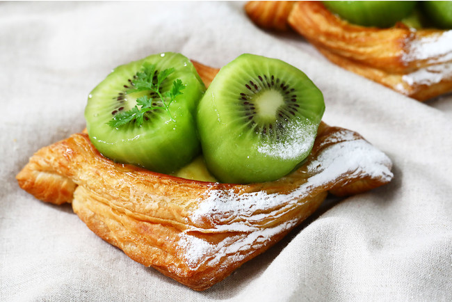 大きくカットしたキウイフルーツを豪快に丸ごと1個分トッピングした贅沢な「キウイのデニッシュ」。