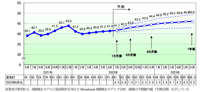 2022年6月の景気DIは前月比0.2ポイント増の41.4となり、4カ月連続で改善した。