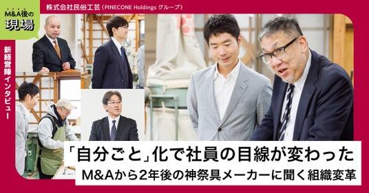 創業50年、長崎県から全国の神社へ神祭具を届けてきた株式会社民俗工芸。全国1万以上の神社にカタログを届けるなど、独自のルートを築きビジネスを続けています。2024年には、創業オーナーからの株式譲渡によりPINECONE Holdings株式会社のグループに加わりましたが、社内のメンバーは誰ひとり欠けることなくグループ加入以前からの社長を中心とした新しい経営体制のもとで組織改革を推進中です。M&A後の株式会社民俗工芸で働く人の想いや変化について、「新経営陣へのインタビュー」と「社員座談会」の2つのコンテンツを公開しました。