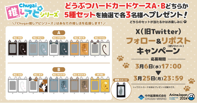 中外鉱業コンテンツ部よりあなたの推し活を応援する『Chugai推しアピシリーズ』からシリーズ新作アイテムが登場!耳つきのキュートな「どうぶつハードカードケース」が「AnimeJapan 2024」にて販売決定!