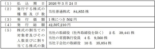 アステナホールディングス株式会社(本社:東京都中央区、代表取締役社長:瀬戸口 智、証券コード:8095)は、2026年2月26日開催の取締役会において、下記のとおり、新株式の発行(以下「本新株式発行」又は「発行」といいます。)を行うことについて決議いたしましたので、お知らせいたします。
