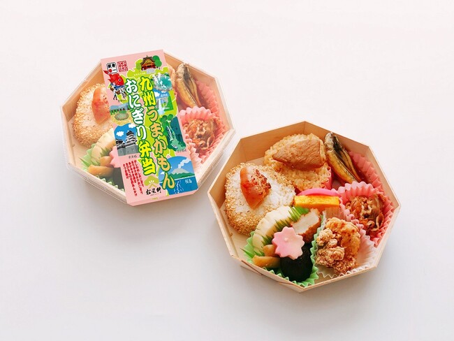 内容:九州を代表する食材「黒豚」「かしわめし」「博多辛子めんたいこ」を使用し、おにぎ弁当に仕上げました。
