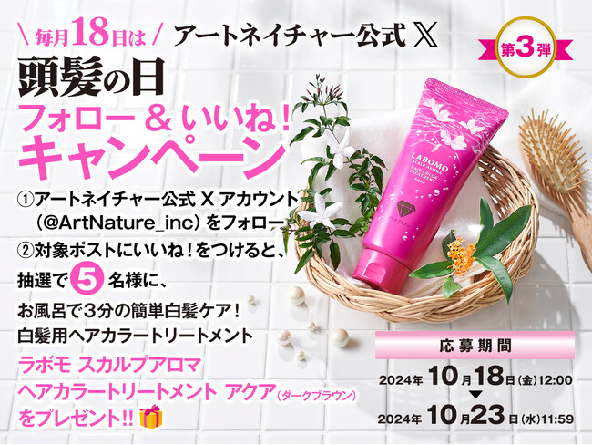 毛髪に関する総合サービスを提供する株式会社アートネイチャー(本社:東京都渋谷区 代表取締役会長兼社長:五十嵐祥剛)は、2024年10月18日(金)より、アートネイチャー公式Xにて「頭髪の日キャンペーン 第3弾」を開催いたします。